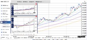 来週の相場は、上昇の勢いが抑えられ、下降トレンドに入る可能性が高いと見られる。特に、10日移動平均線(青色:45,000円)を前半で割り込むようであれば、次の節目である44,000円、さらには43,000円までの下落も視 […]