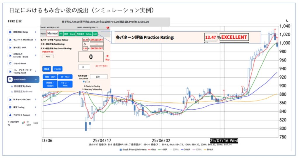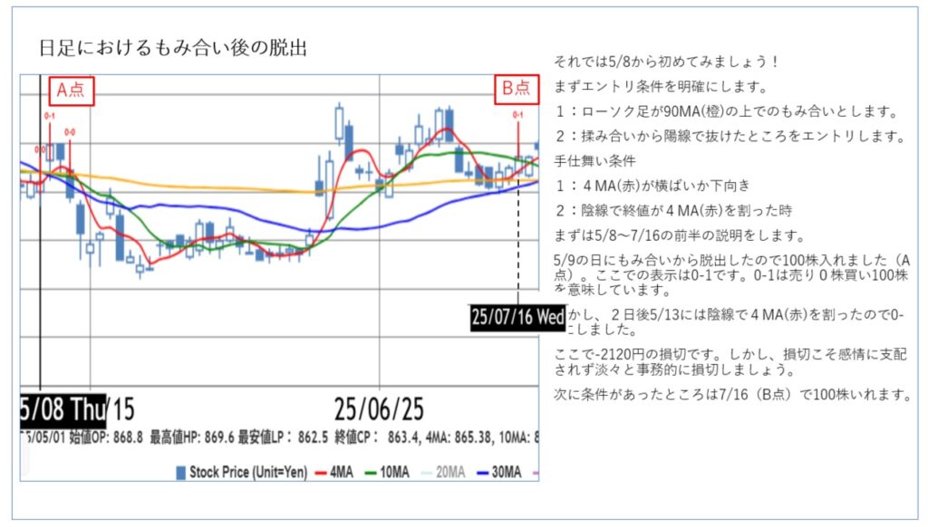 日足におけるもみ合い後の脱出シミュレーション実例|損切を抑え利益を伸ばす実践トレード