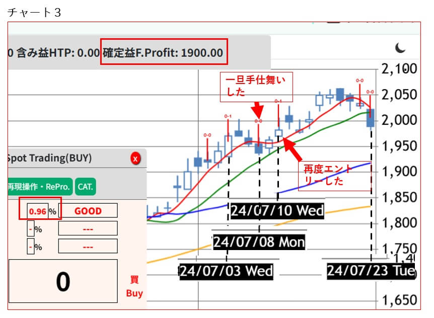 事前に損切りを決めていたことで冷静に耐えられた好例である。