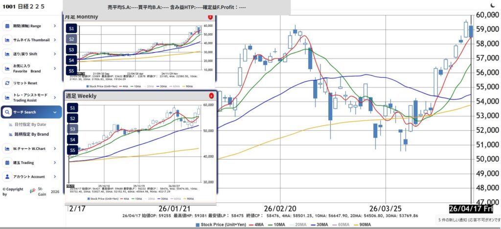 今週(4/13–4/17)の日経平均テクニカル分析|週足反転上昇と60,000円再挑戦局面